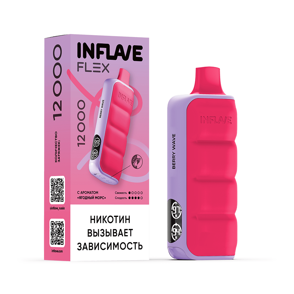 Количество затяжек, шт12000 Крепость, %2 ЛинейкаINFLAVE FLEX 12000